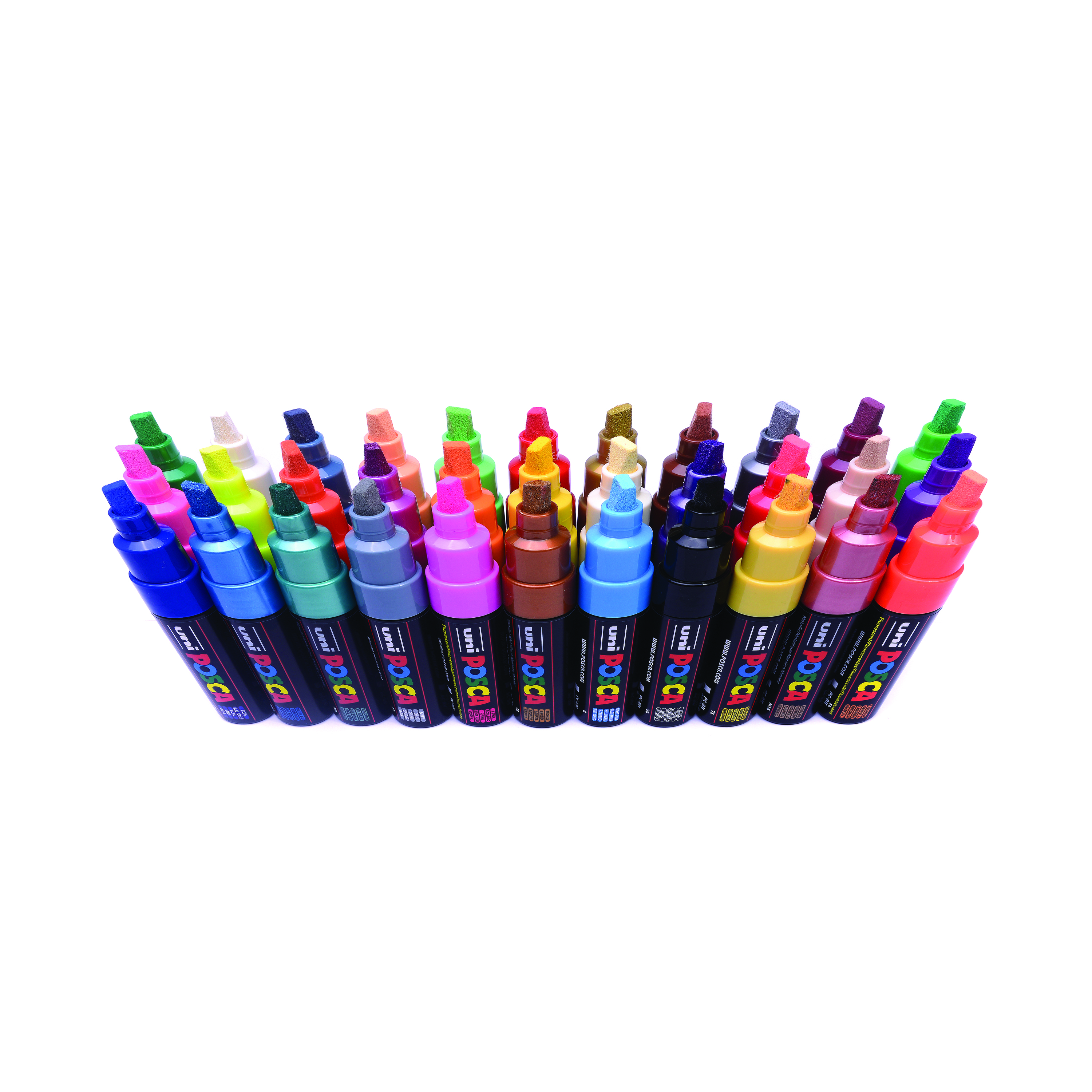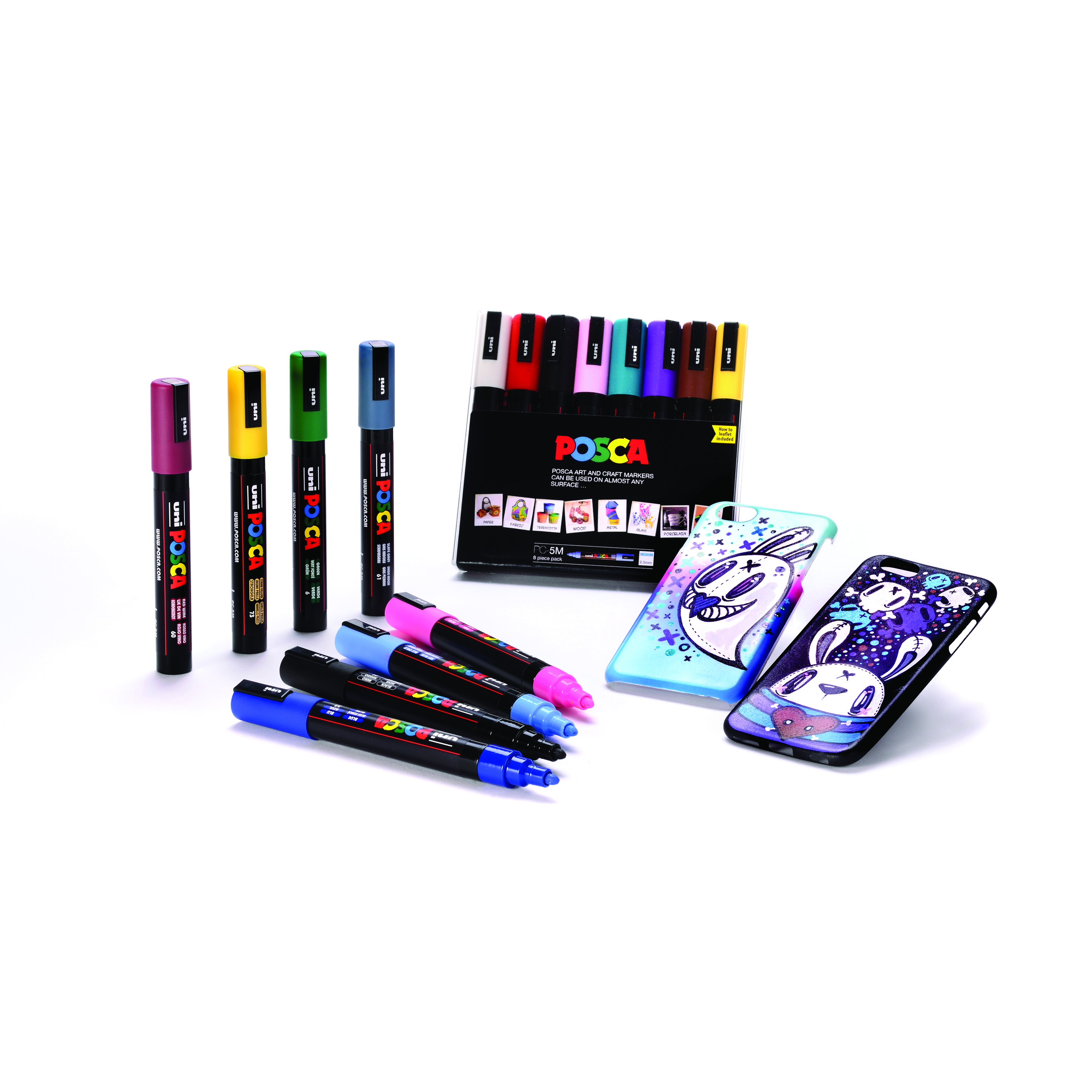 POSCA paint markers are excellent multi-surface, creative pens. The uni POSCA paint marker contains water-based pigment ink which is lightfast, water-resistant and will write on almost any surface. The POSCA markers are permanent markers on paper, card and wood and can be made permanent on various other surfaces including terracotta, porcelain, glass, textiles, metal, plastic and wood. These multi-use marker pens are available in a number of vibrant, opaque solid colours which can be mixed while the paint is wet and overlay colours on top of one another when they dry. Excellent for customisation, up-cycling, illustration, posters, fine art or sign-writing. Supplied in a pack of 8 pens in assorted colours.