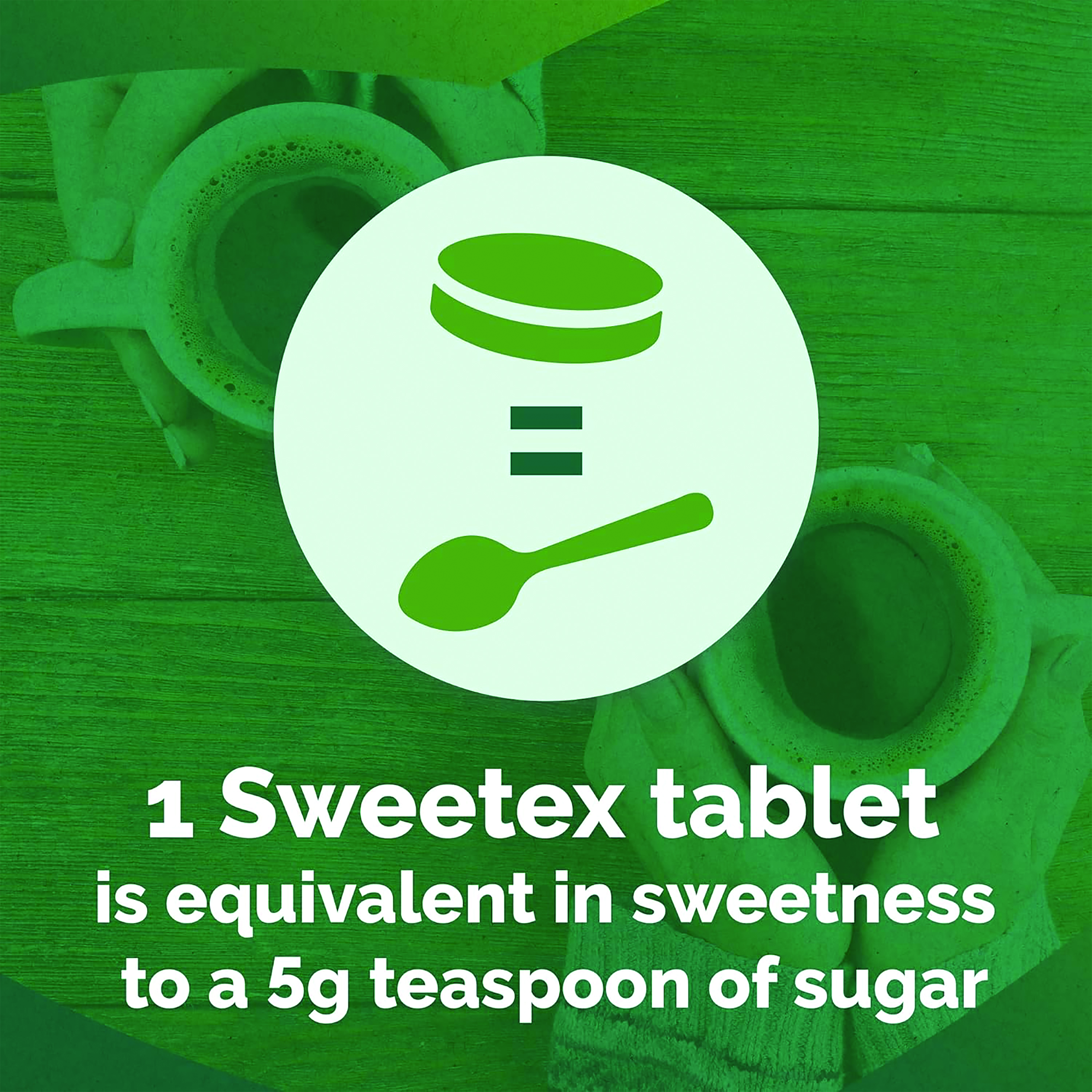 - One tablet is the equivalent in sweetness to a 5g teaspoon of sugar